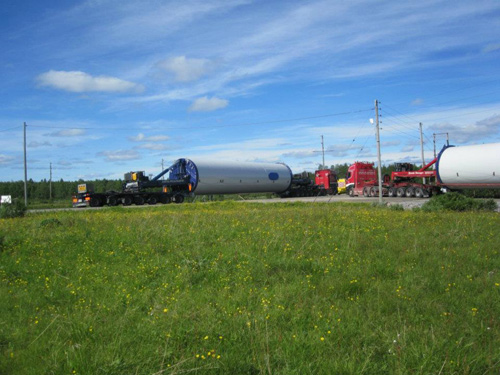 Nu i Juli börjar delarna till vindparken anlända med biltrailers till Killinge, fler och fler
